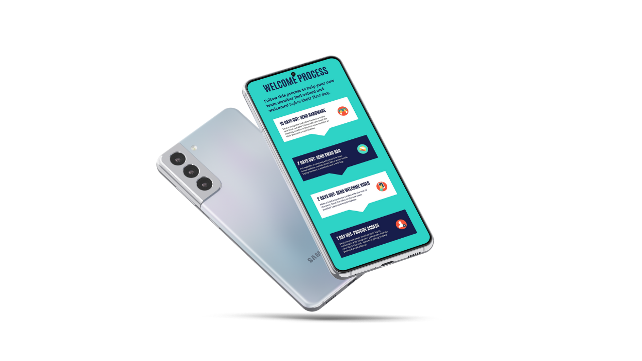 I designed two job aids for the course Onboarding for Remote Teams. The purpose of the job aids were to refresh employees with onboarding best practices days or weeks after they completed the course. The eLearning course taught managers two processes that lead to a positive onboarding experience for new hires. I outlined the steps of the process with concise and action-oriented language.